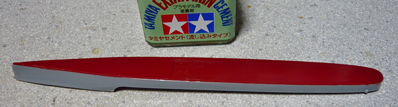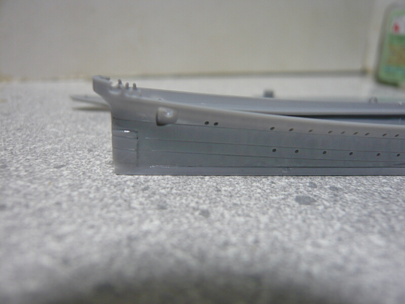 艦首部分は合わせが上写真のように左舷側に回っているためちょっと目立つのでヤスって目立たなくしておきたいところ。