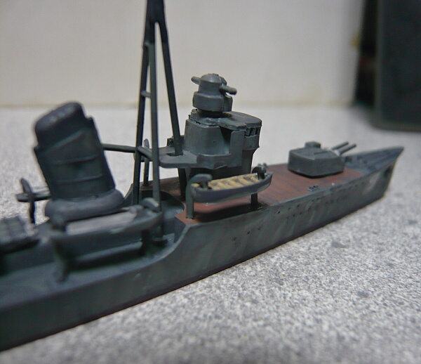 斜め上方から。艦尾周りがややスカスカな印象ですが、ここは資料写真を見てもあまり物が載って無いのでこんなもんかもしれません。