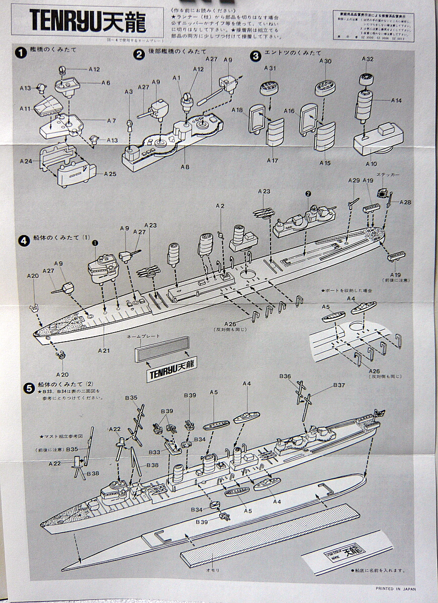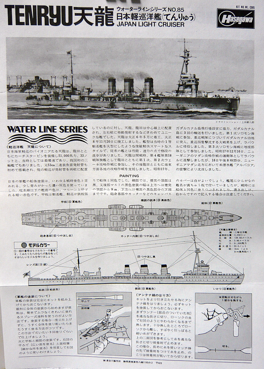 ハセガワ1/700ウォーターラインシリーズの軽巡洋艦天龍です。