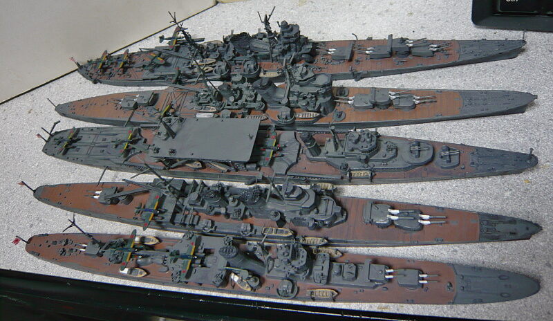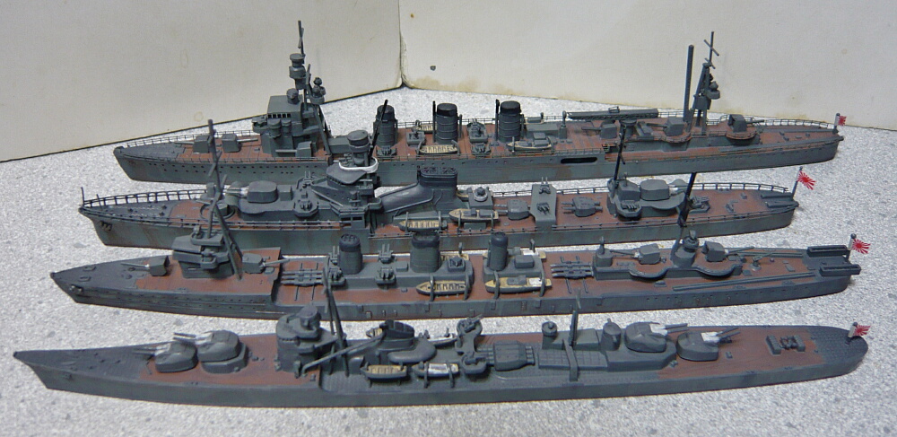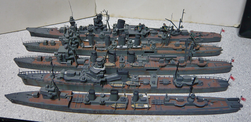 写真上から利根・足柄・千代田・衣笠・矢矧。170~200mのクラス。幅も近い印象。
