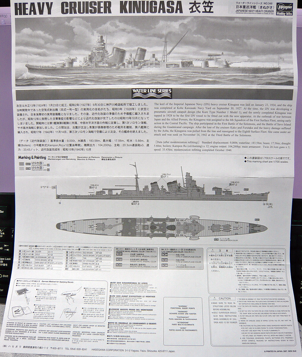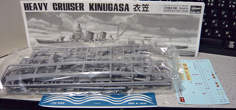 ハセガワ1/700ウォーターラインシリーズの重巡洋艦衣笠です。