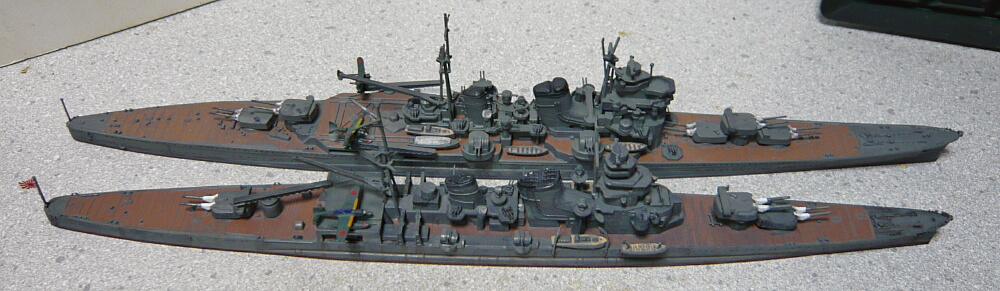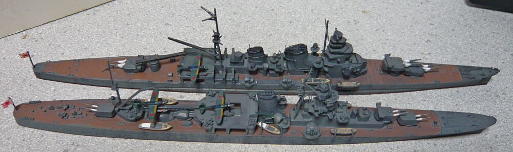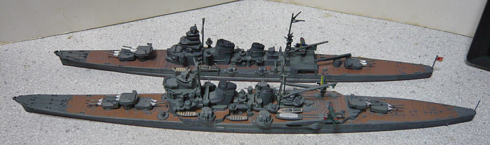 妙高型重巡洋艦の足柄と。甲板2段目もリノリウム色になっている方が足柄。似ているようで結構違いがあります。