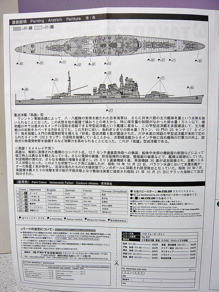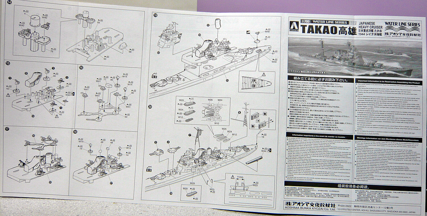ウォーターラインシリーズのナンバリングは337、元々高雄はウォーターラインシリーズNo.2(→No.325)と最初期からあるものでしたがこのキットは近年リニューアルされたもので、以前組んだハセガワの足柄(No.336)の次に位置します。
