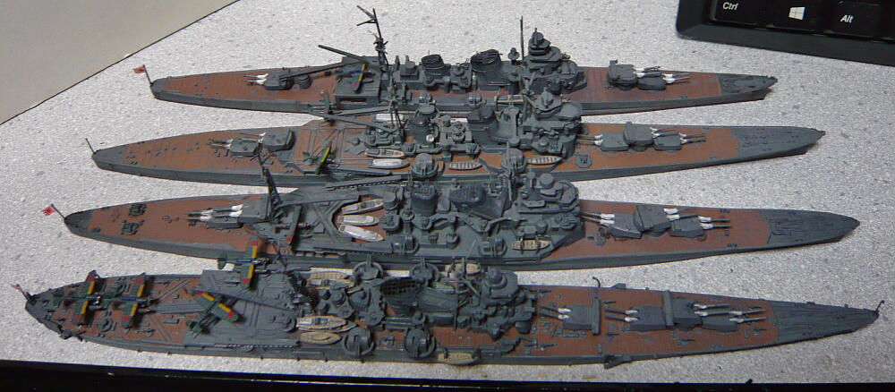 重巡4種。上から衣笠、足柄、高雄、利根。下3艦はほぼ同じ全長です。最上型もいずれ・・・