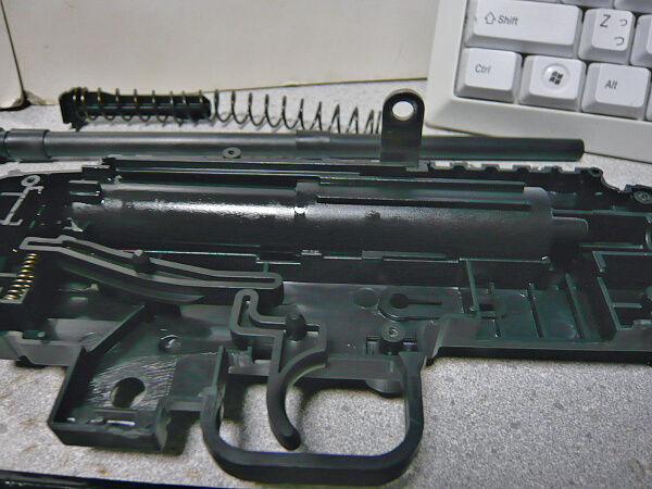 もう一度組んで弾を流しこみ、コッキング・発射を繰り返すと、今度はちゃんと1発ずつ撃てるようになりました。ただしまだたまーに2発発射するし、残弾が1発だけになるとチャンバーへ落ちなくなるので若干の調整の余地が残りました。