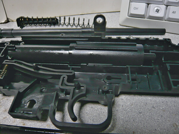 取り出された機関部。この状態でもあとコッキングレバーを取り付けマガジンを装着すれば単体でも機能します。