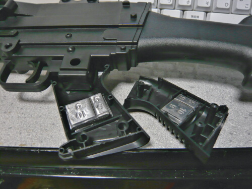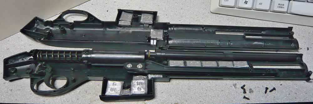 これで大丈夫なハズ・・・組む前にハンドガード内の空きスペースにウェイトを少し貼っておき若干の重量アップ。