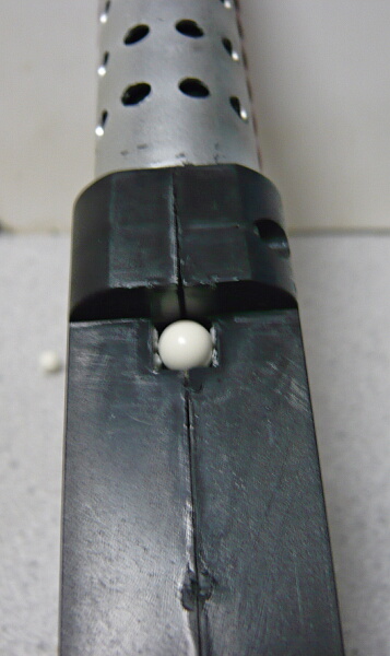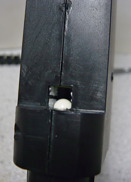 このように6mmBB弾を上に置いただけでスッポリはまり込んでしまうほど内径がユルユルで、逆流防止の役を成していません。