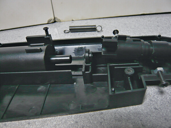 買った当初よりコッキング時にシリンダー方向へ弾が転がり込む悪癖のあった中華エアコキAS50。しかし昨日のダブルパンサーCA870-Rで得たノウハウがこの銃に適用できそう!というわけで・・・