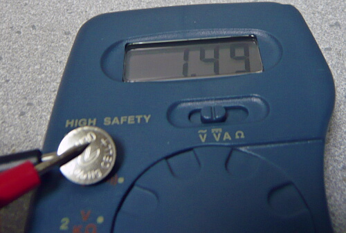 LR1130の方の電圧を測ってみると、これが1.49Vとあまり高くない・・・