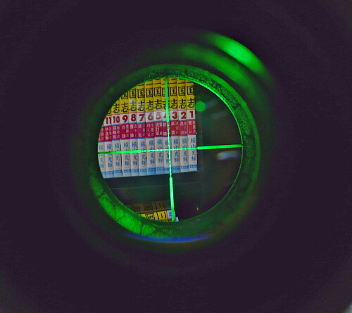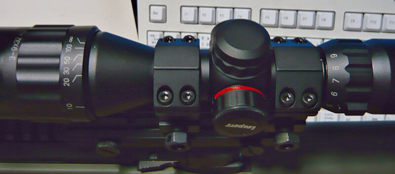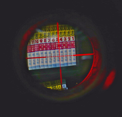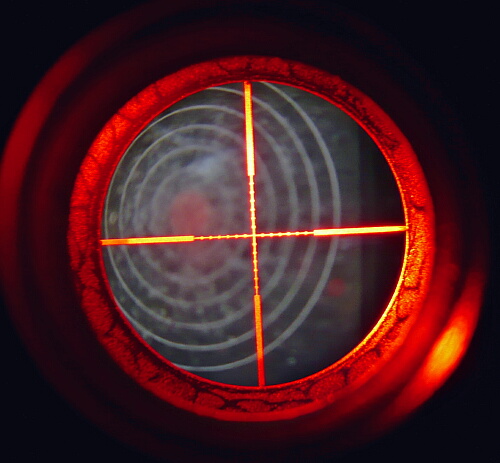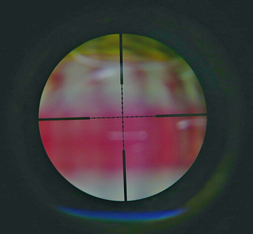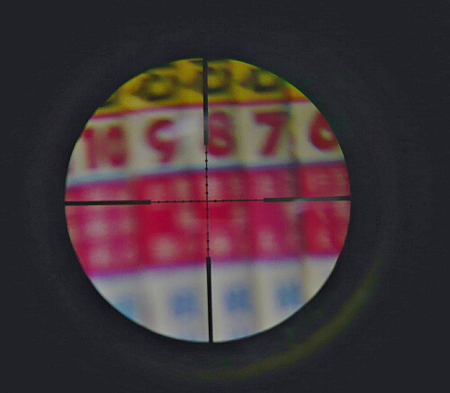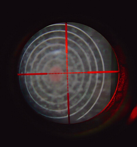 赤の輝度最小。光らせなくてもレティクルは十分見やすいスコープですが、やっぱり光った方が見やすいか。