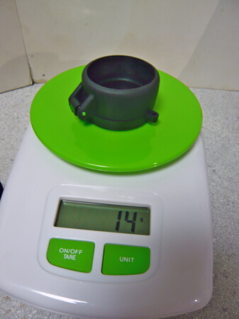 バトラーキャップは対物側が16g、接眼側が14g。ホコリ避けとして重宝する装備。これが無いと立て掛けて保管できません。銃口を上、ストックを下にする保管の場合だと最低でも対物側のキャップは必須。ACOGみたいにカットが斜めだとキャップが付けられず立てて保管できないのでスリングで吊って銃を水平にして保管する方向になります。