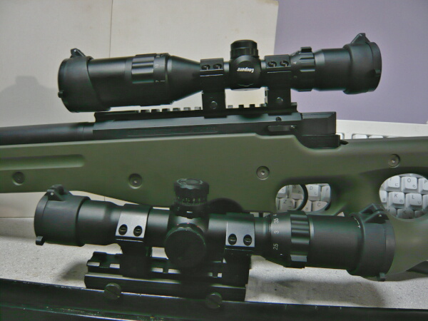 キングアームズのハイマウントベースに載せたマルイのイルミネーテッドショートズームスコープ(手前)と。どちらも違った個性があり、優劣をつけるのは難しいところ。今回のスコープはイルミは微妙ですが値段からするとスコープ自体は中々のものだと思うのですが。所々使い方が分からない部分もあり、やや私のスキルを超えた品だったかもしれません・・・