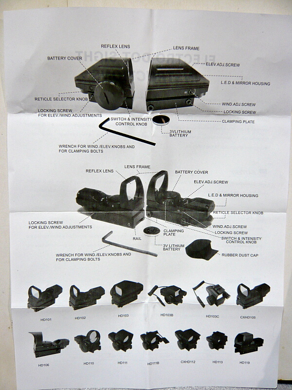 説明書。ドットサイト側の記述しかなく、レーザーの方の使い方がよくわかりません。
