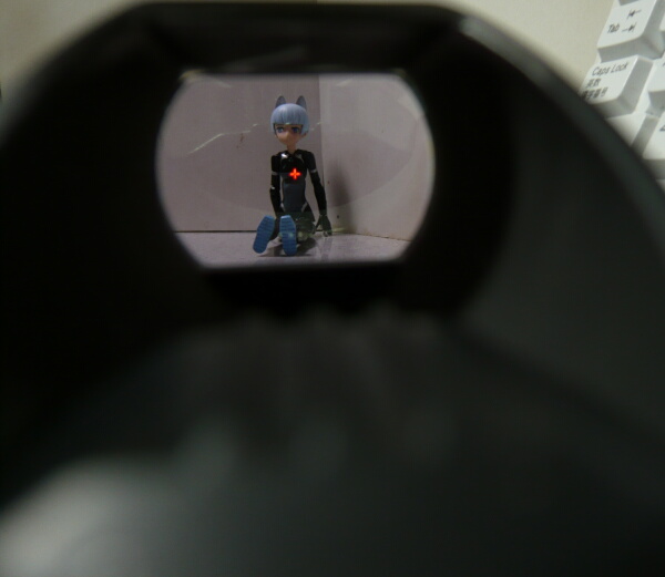 レンズから離れて覗くとドットは大きめに見えるようになります。