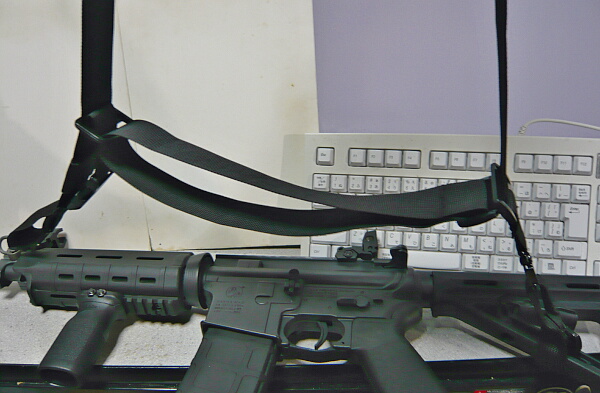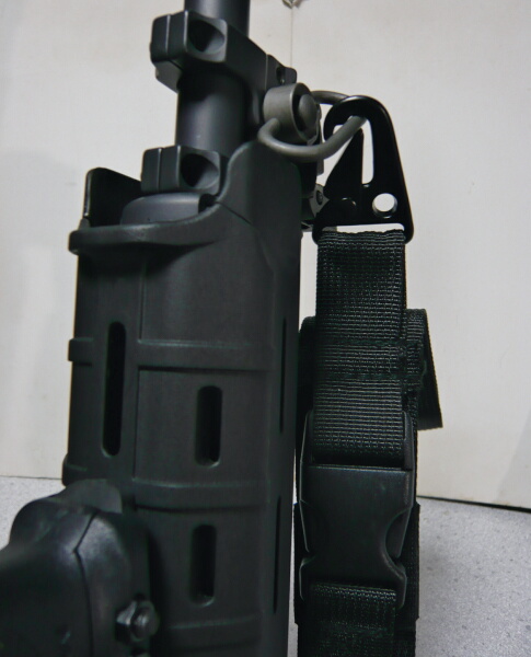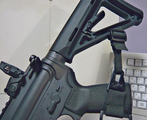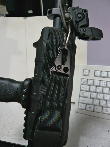 3点だと割りと普通に使えそうですが、2点とのスイッチが面倒。後ろ側をストックに掛けていると3点はイマイチしっくりこないのでこの銃だと2点で使いたいところですが、このスリングはあまり2点での使用には向いていません。