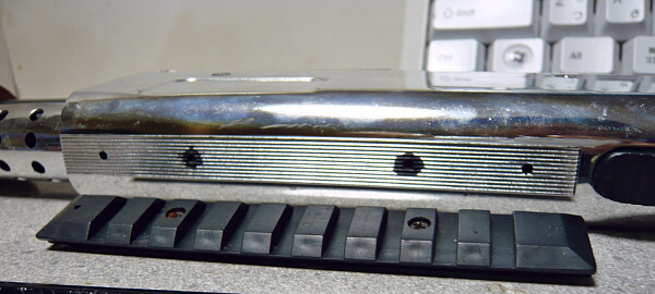 トップレイルは上からネジ2本で止まっているだけ。17mmと変なレイル幅なので付け替えるのも良いでしょう。