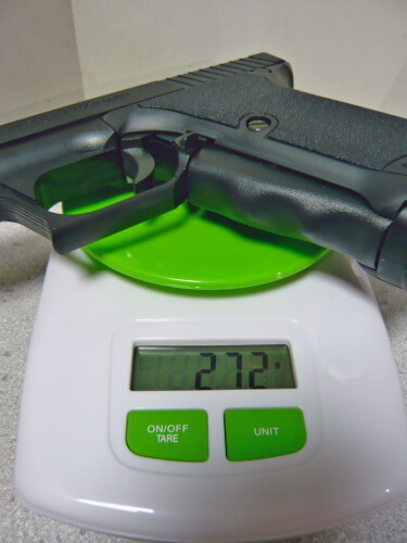 初速は30mps前後と、10歳以上用としては標準的。やはりホップは0.2gに合わせてあり、付属の0.12g弾だと上へすっ飛んでゆきます。コッキングはフリクションがあるのかあまり軽い感じではなく、コック感もガリゴリしています。塗装をするとニチャニチャした引き心地になった記憶。トリガーはジュラコン系のエンジニアリングプラスチックででグニャグニャニチニチとしており、塗装をしても食いつかずバリバリ剥がれます。集弾性は良く、実銃同様バレルが固定なのが効いているのかも。実銃P7は一方では不評ですがまた一方ではグリップが太い事の利点としてリコイルがマイルドで、バレルがフレームに固定されているため狙ったところによく当たる、と高評価されている部分もあるようです。