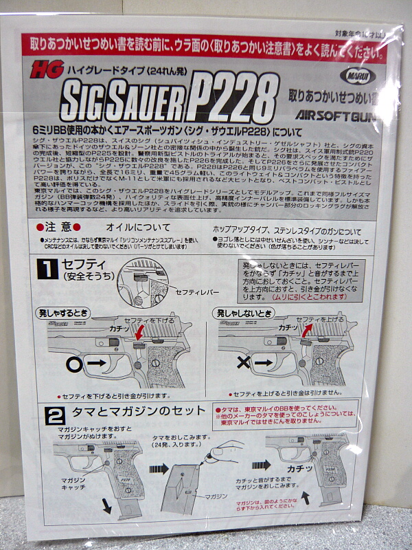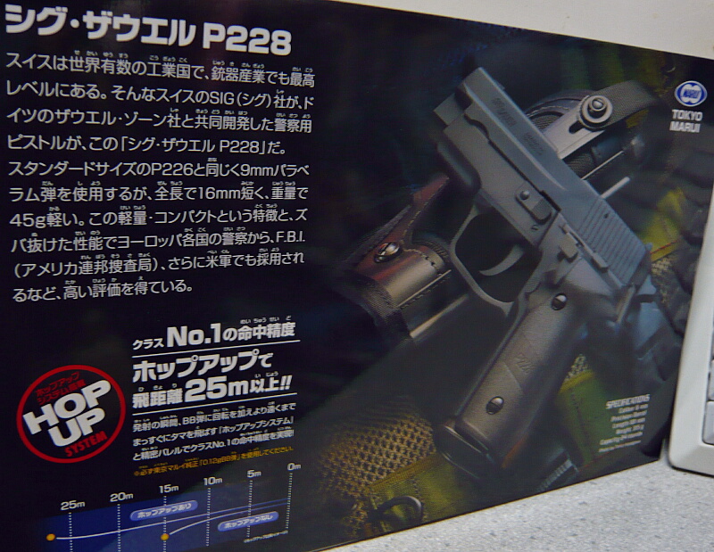 東京マルイのエアコキハンドガン、SIG/SAUER P228(10歳以上用)です。