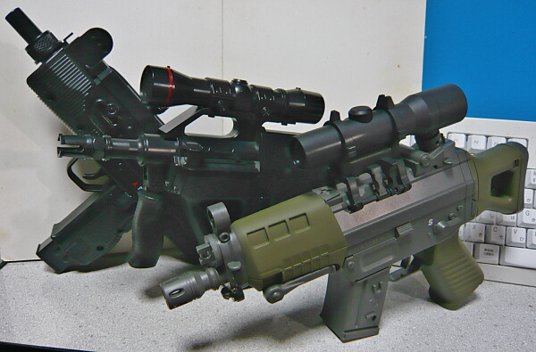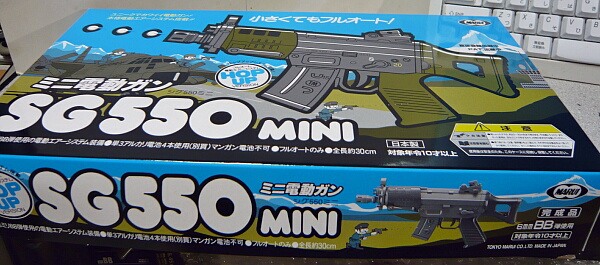 SIG SG550はスイスの5.56mm口径アサルトライフル。その独特な渋いスタイルにはファンも多いようす。ただ、マルイのスタンダード電動SG550は90年代前半からカタログに発売予定として載っていたものの中々発売されず、興味が引けた頃にいつの間にか発売されていつの間にか絶版になってしまったのが悲しい・・・可変バーストメカを搭載したちょっと変り種だったらしいのですが、現在はバーストメカが省かれた短小モデルのSG552シールズのみが流通しています。フルサイズのSG550のトイガンは海外のG&GやJGなどが出しています。(G&Gのは4万円くらい、JGのは1.5万円くらい)