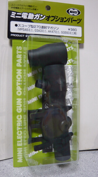 今回はオプションパーツも買っておきました。スコープ型270連射マガジンです。MP5ミニ、G3ミニ、AK47ミニ、SG550ミニに適合。