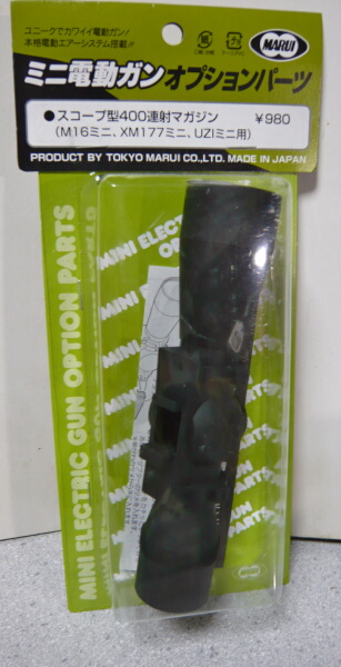 こちらも昨日のSG550ミニと同様にオプションパーツを買っておきました。スコープ型400連射マガジン。M16ミニ、XM177ミニ、UZIミニに対応します。