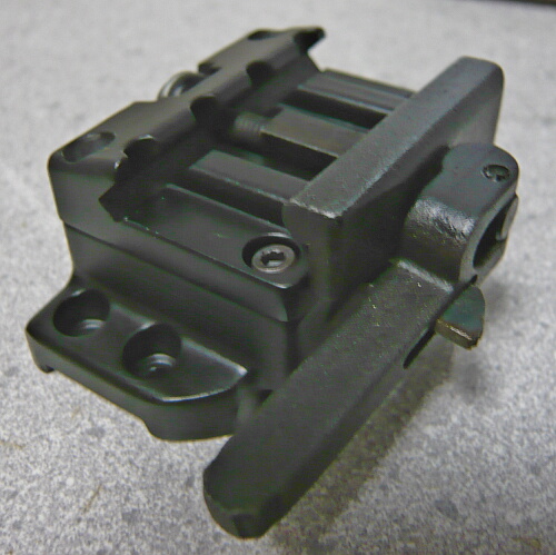 レイルと接する部分は3本の突起がレイルの横溝に掛かる事になります。そのため、キッチリとピカティニーレイルの体裁をとったレイルでないとちゃんと固定できない事になります。ウィーバーレールなど、横溝の間隔が違うものには掛ける事すらできないので注意。