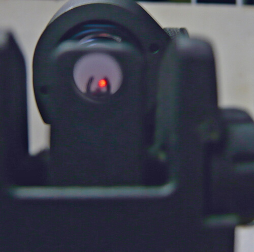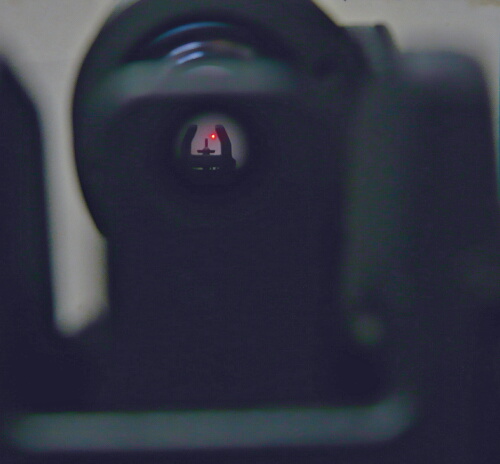 ドットを光らせ、立てたMBUS越しに覗いたところ。
