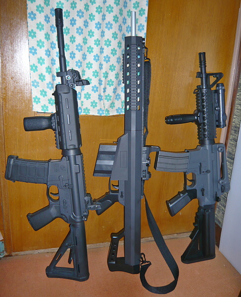 スケール感を惑わせる一枚。右のG36も左のドラグノフもBOYSサイズですのでこの中にあるとこのバレットもゴツく見え・・・見えなくなった・・・