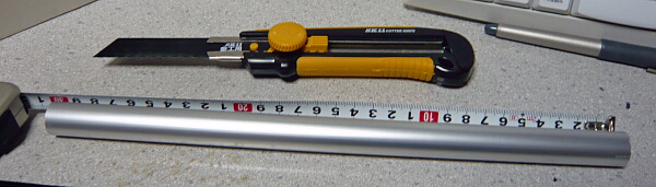 とはいえだだ長いのは無駄である事に変わりはありませんので、せいぜい元の長さまでに。外径18mm(内径16mm)のアルミパイプを30cmにカットしてアウターとします。