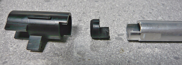 ジャンクパーツの中にあったマルイ電動ブローバックM92Fのチャンバー~インナーバレル。ホップアップも付いてるし精度の良いマルイの純正アルミバレルですよグフフ。