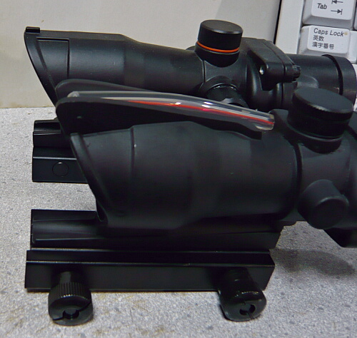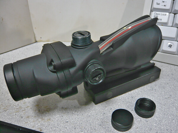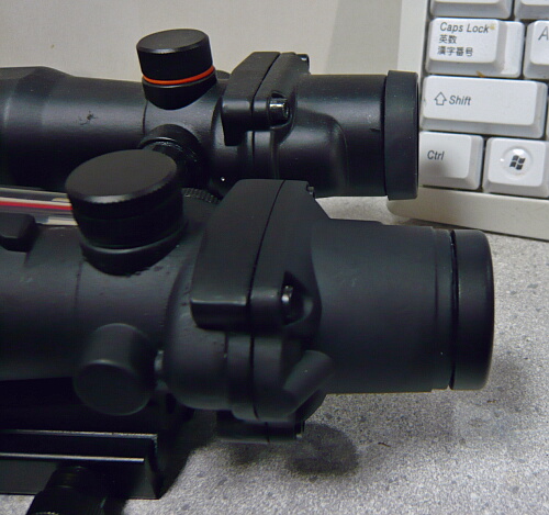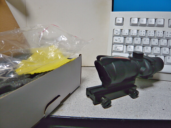 形を問わなければスコープはもっと安くて使いやすいものがいくらでもあります。そこへ敢えてこのACOGレプリカを選ぶ理由はやはりカッコ良さ。この形。集光チューブがダミーのものはもうちょっと安いのがあります。でも光った方が申し訳程度とはいえ便利。でも、う~ん・・・正直ACOGタイプはドットサイト向きの形。ACOGタイプドットサイトは安くてそこそこ使えるものがあるのでこの形がイイ!というならドットサイトになっているACOGの方がいいかも。