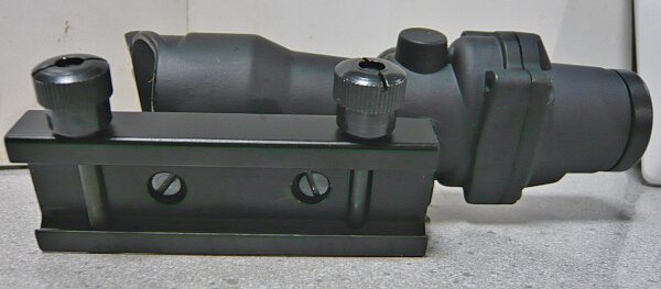 マウントベースは20mmレイルに対応した手で回せるネジが付いたもの。M4キャリハンと同様の操作で着脱ができます。