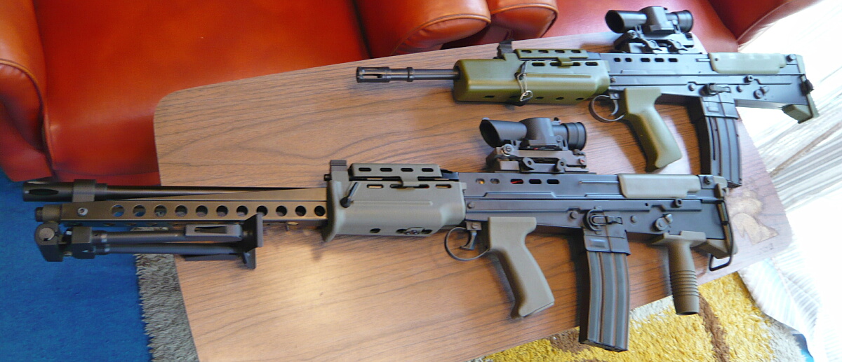 トイスターのエアコキL85A2と。他にも2挺中華チープガンなL85を持っていますが、出すのが面倒な所にあるので今回は勘弁。