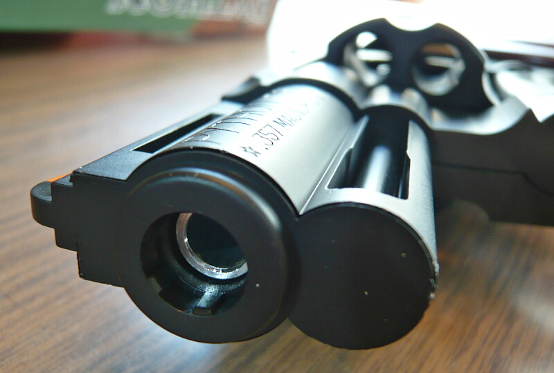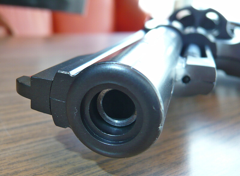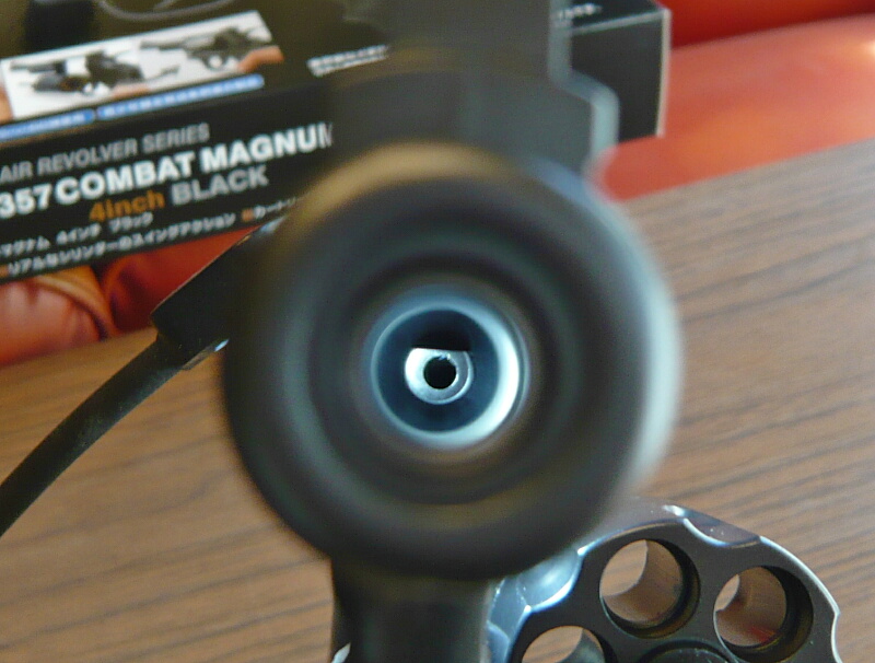 各部を観察。銃口はすぐ奥に段差があってちょっと迫力不足。真鍮製のインナーバレルが更にその奥に見えます。
