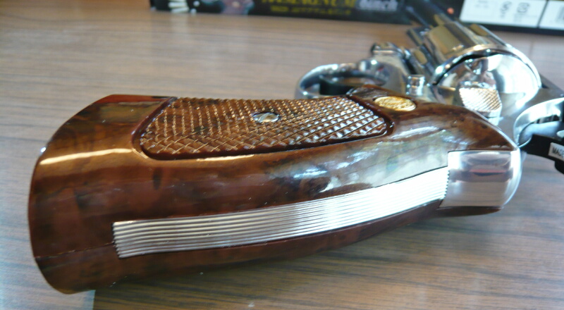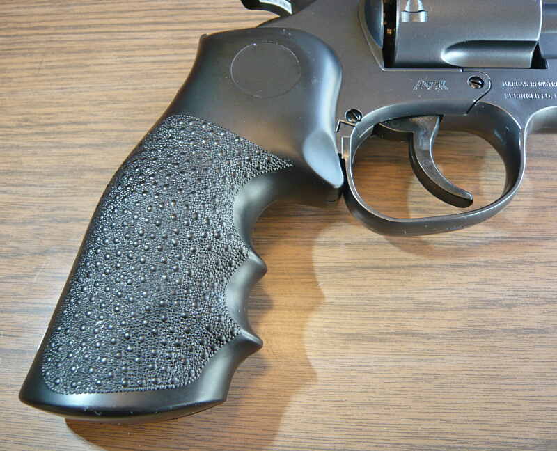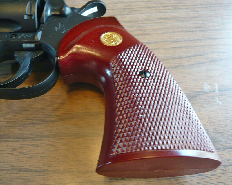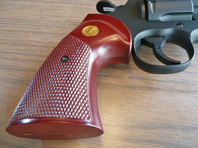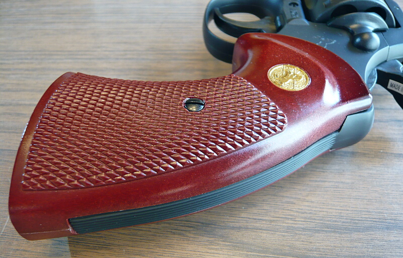 グリップはパイソンと言えばこれ、という感がありますが、このタイプはクラウンのものでは2.5インチだけで、4・6・8インチではマルイのエアリボと同様のパックマイヤー型のものが付いています。