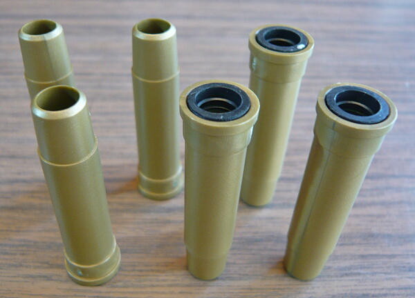 筒はシリンダー前端にツライチの長さがあります。構造的にはカートの後端に込めたBB弾がカート内面ではなくこの筒を通るので、カートの品質に左右されにくいメリットがあるかと思います。