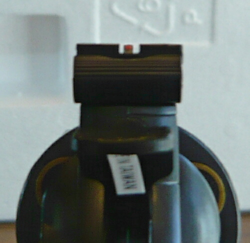 フロントサイトは後面の斜め面の上方に赤いインサートが入っており、サイティングの助けとなります。