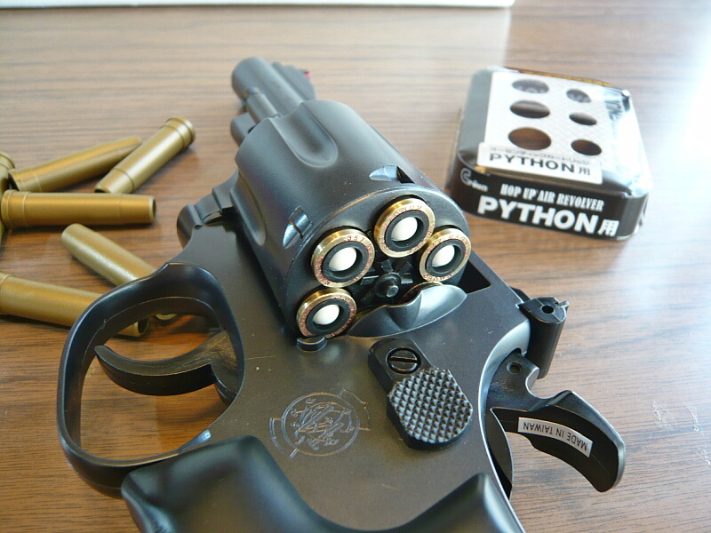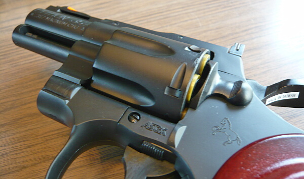パイソンとM19はライバル的関係にありますが、M19でよく言われるフレーム強度不足はパイソンではあまり聞きません。実銃のパイソンは熟練工による非常に上質な銃であったそうで、価格差も大きかったので焼き入れ技術など強度に関わる部分で上回っていたのかもしれません。(ただしパイソンは熟練工の引退により年々質が落ちていったともいわれています)