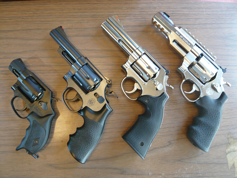 S&W左からJ・K・L・Nフレーム。あと何だ、50口径のゲテモノXフレームか。