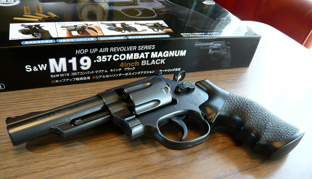 クラウンのホップアップエアリボルバーNo.6 S&W M19 4インチブラック(10歳以上用)です。