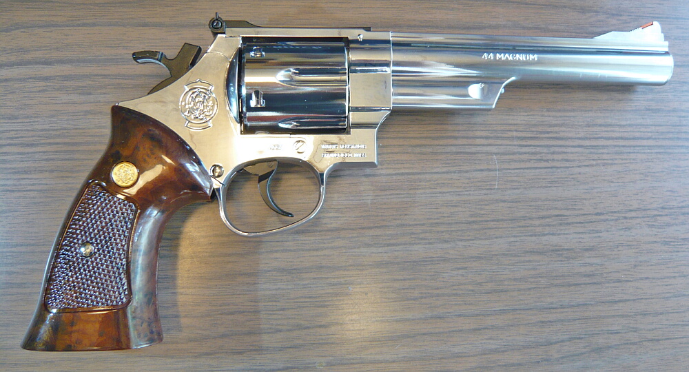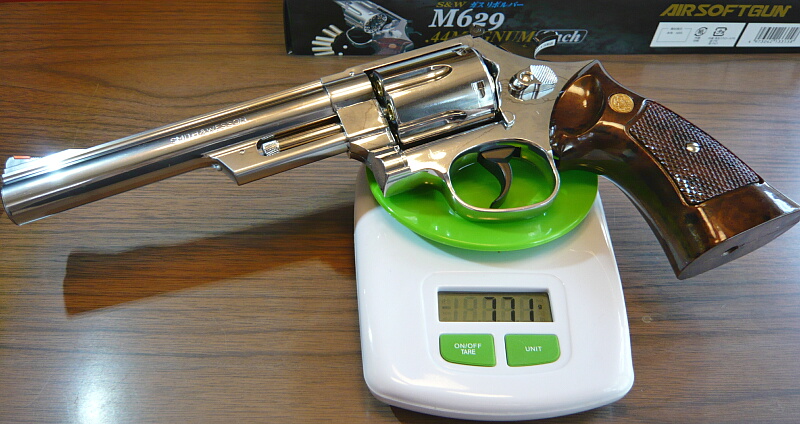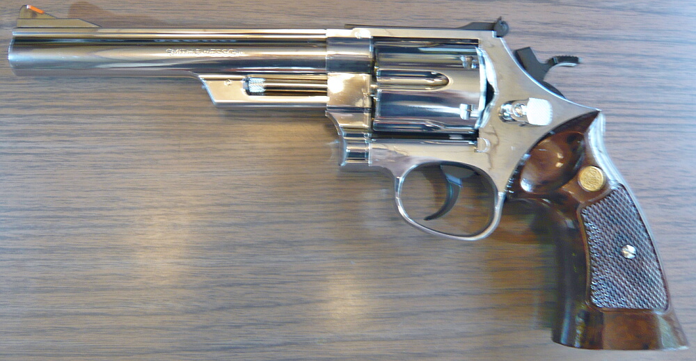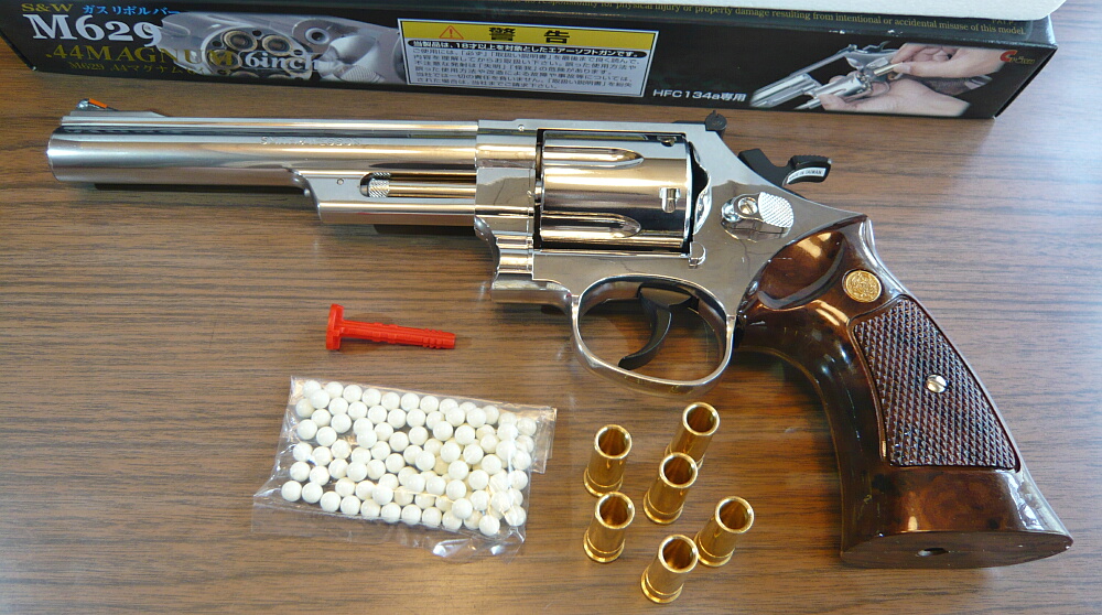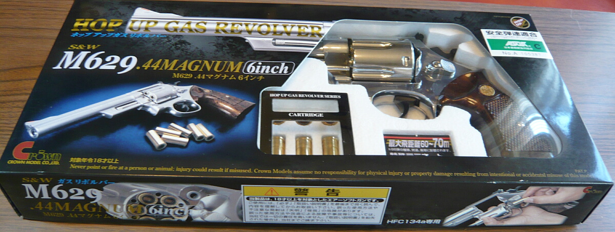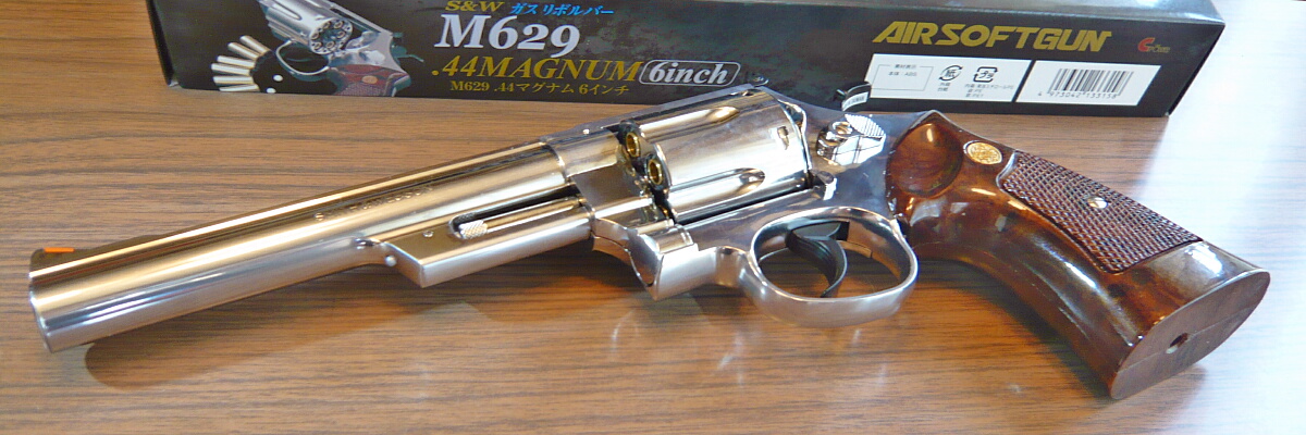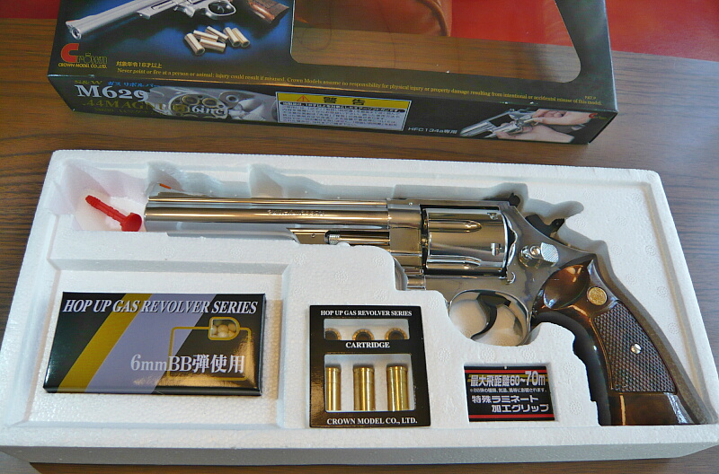クラウンのホップアップガスリボルバーNo.5 S&W M629 6インチステンレスタイプです。