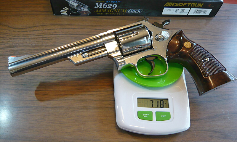 本体重量は718g。実銃は1.4kgあるので半分ほどですが、これでも軽くはありません。
