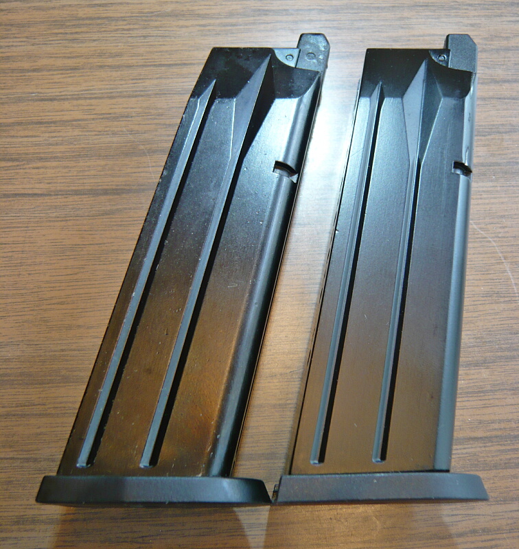 左がマルイ純正、右がWE製。表面処理はマルイが染めでWEが塗装。染めとか塗装とかAKみたいやな・・・