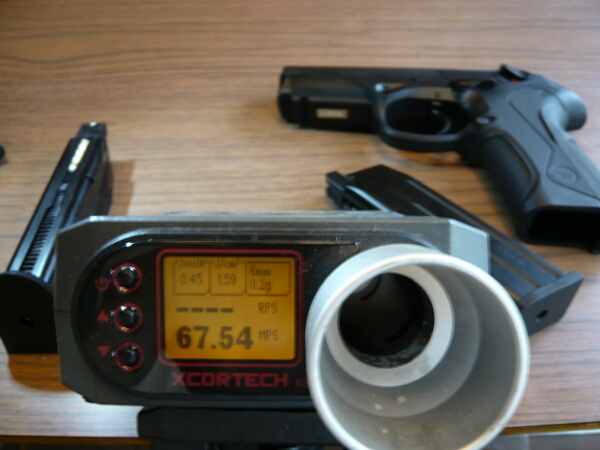 気温は26℃、初速は0.2gで70m/s前後。全弾撃ち尽くすとスライドストップもちゃんと掛かりました。