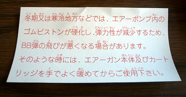 バレルの収まるスペースに入っていたピラ紙。寒い時期にゴムが硬化する傾向があるのでしょうか?