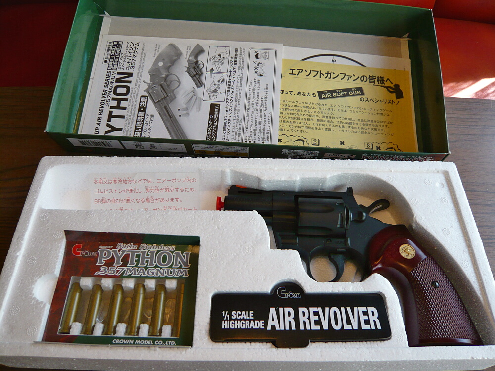 クラウンのリボルバーは四半世紀近く前にキット物のパイソンを2種類ほど買ったきりだったのですが、最近のものはかつての「いかにも安物」からは脱却していて、安い割に中々のものらしいので買ってみる事に。