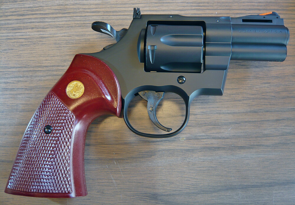 このパイソンはちょっとヘナチョコというか、カートへの弾の込め方で弾が飛んだり飛ばなかったり、命中精度的にもバラつきが多かったりと、ちょっとマルイらしくない製品。じゃあクラウンのが良いか?と言われると、・・・大体同レベルというか。・・・昔のクラウンのリボルバーは見た目は値段なりよりはちょっと上、実射性能は時代と値段なりだったのを見ていると、「クラウンにしては上々」となるので少々評価は甘くなるかも?
