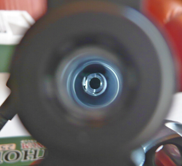 銃口からインナーバレル内を除いたところ。やや分かりにくいですがフォーシングコーンのすぐ前方の上面にHOP突起があります。