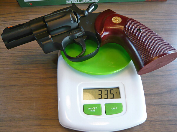 銃本体の重量は347g。軽いですが代わりに取り回しに優れます。